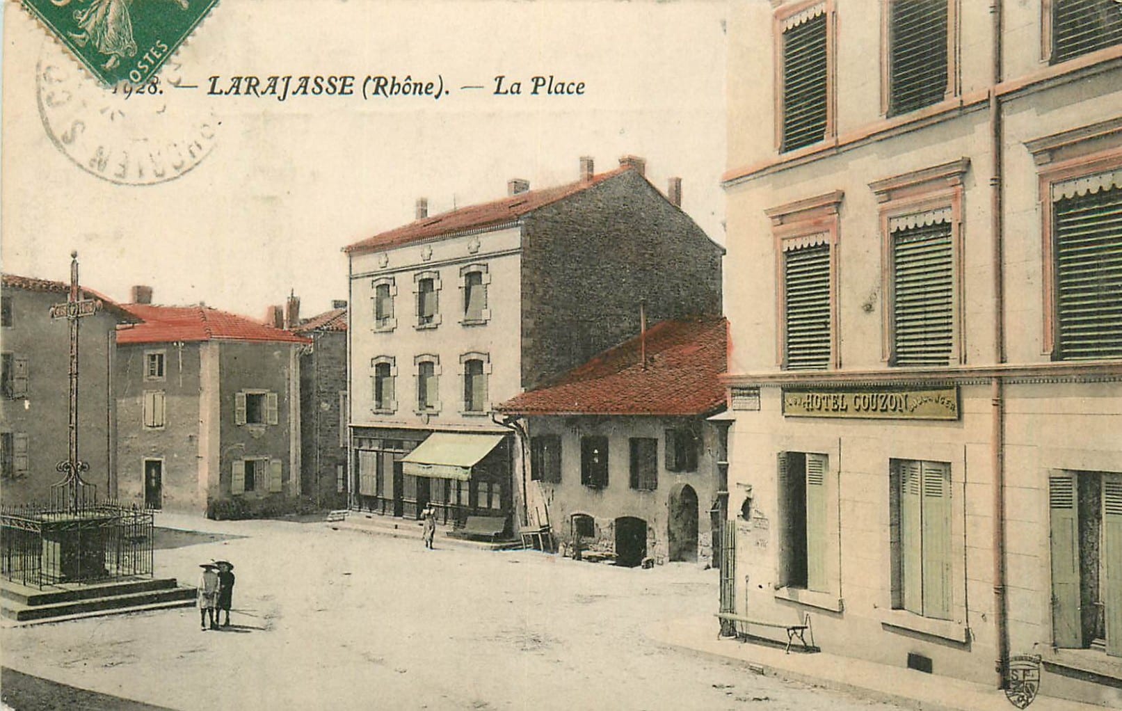 -Où nous voyons que la poste sur laquelle est fixée la seconde plaque (flèche orange) n’était autre que l’hôtel Couzon-