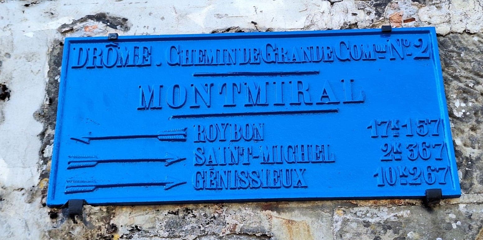 Le Chemin de Grande Communication N°2 allait de Romans à Roybon (Isère). Voici donc à Montmiral une plaque directionnelle sur cette voie.