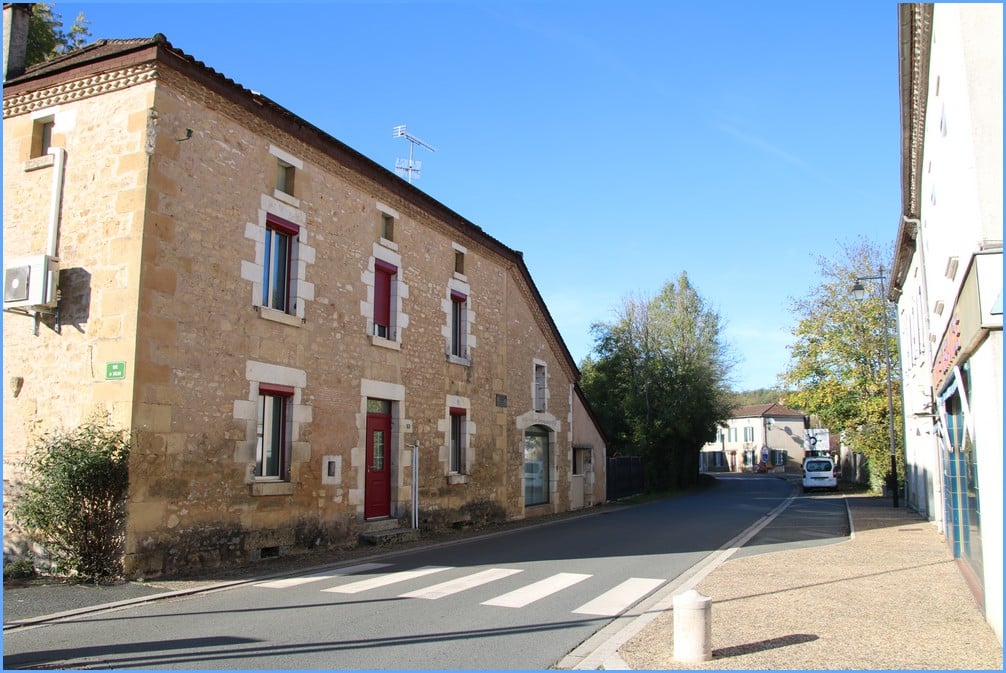 Dans le bourg, le long de la D76, sur la rue de Thiviers, près de l’intersection avec la rue de Salon. Sur la plaque, l’indication de la voie a été burinée.