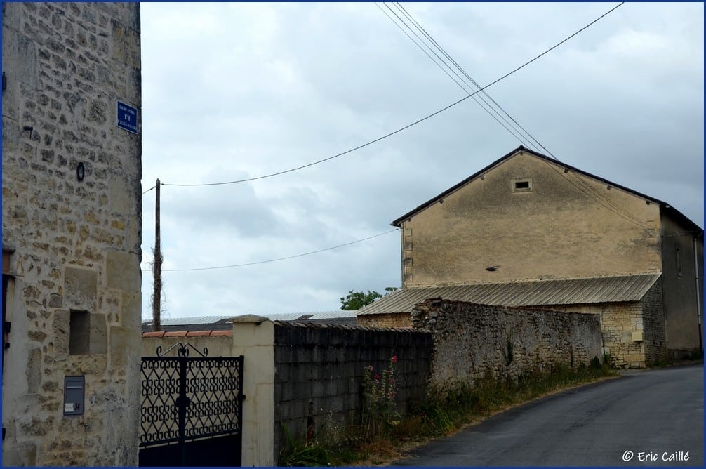 Dans cette commune une plaque de cocher en l’état indiquant la distance de la limite du département (la Charente-Maritime, à l’époque Charente-Inférieure) et la distance pour La Rochelle. Cette plaque était sur la Route Impériale 22, classification burinée et non remplacée. Si cette voie allait de Paris à La Rochelle, nous sommes ici à l’embranchement de Mauzé, lequel sur une longueur de 38kms rejoint La Rochelle.