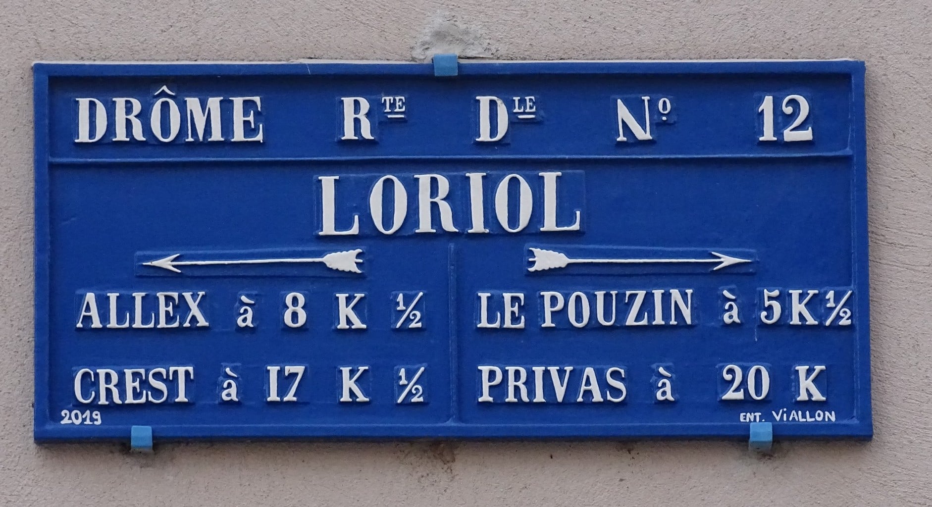 Il y a une troisième plaque à Loriol-sur-Drôme, de même contexture, sans aucun doute de la même époque et du même fondeur; mais cette fois sur une route départementale, la N°12. Photographiée en 2013 par Jean-Christophe Brenier.