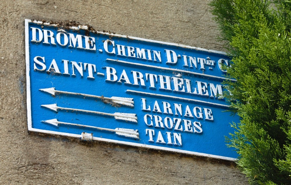 Magnifique plaque (de cocher ou de situation c’est comme l’on veut) sur cette commune de Crépol, photographiée en 2014 par Boris Jacopin.