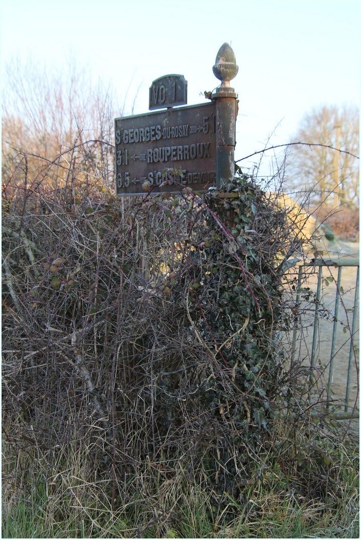 Sur l’écart du Bois-Sybille, commune de Nogent-le Bernard -là où l’on tua le dernier loup en Sarthe en 1893 – voici un poteau bi-plaques photographié par André Bianco en 2013.