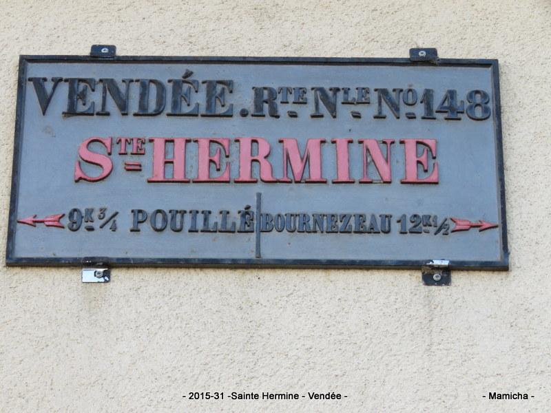 Deux magnifiques plaques à Sainte-Hermine, la première sur la Route Nationale 137 allant à son origine de Bordeaux à Saint-Malo.