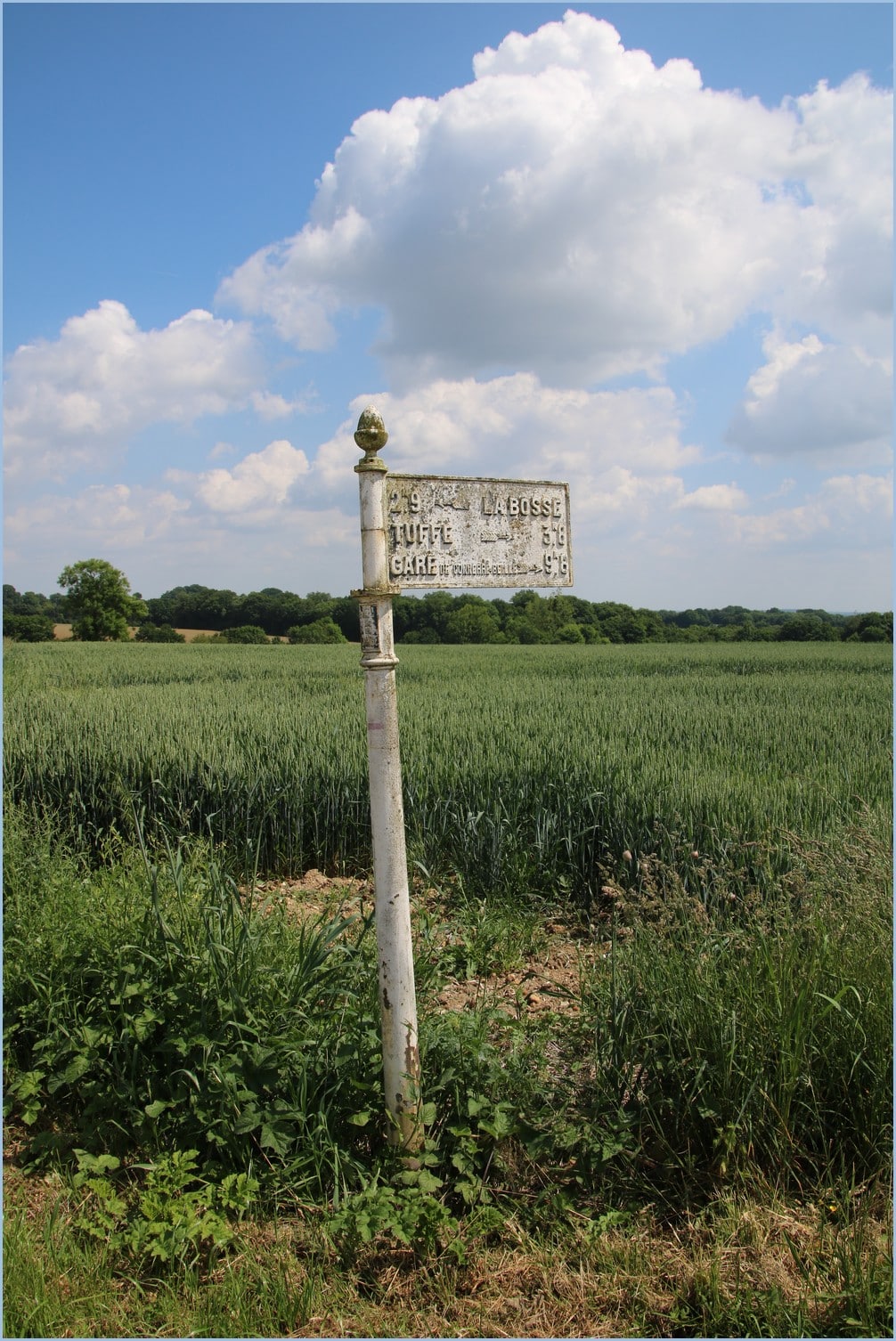 Voici la plaque de distances légales de la commune de Parennes. Je ne sais pas si elle est toujours en place.