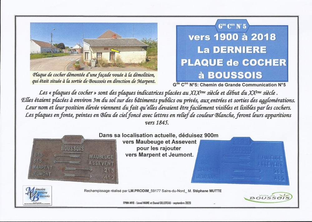 Cette plaque, tout comme celle de Jeumont au bout de la route, sur la D959 actuelle, était sur le Chemin de Grande Communication N°5. Cette mention devait figurer dans l’encart.