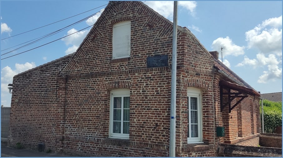 Cette plaque se situe sur la dernière maison du bourg (à l’époque de sa pose). Rue de Monchecourt, direction Monchecourt, la maison supporte non seulement la plaque mais également le panneau d’entrée de commune, lequel était peint. En cliquant dessus vous pourrez lire: ICI Villers-au-Tertre.
