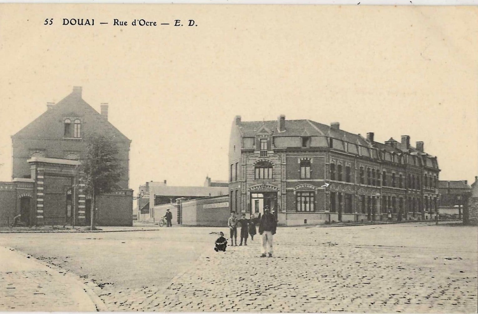 La place d’Arme n’est pas le cœur historique de la ville de Douai. Au fil des sièges et des guerres elle fut complétement remodelée. Le bâtiment à l’angle des rues de la Mairie et de Paris semble dater du début du XXème siècle. Anciennement « Au Bon Diable » les deux plaques en hauteur prouvent qu’il s’agissait de l’intersection de deux routes Nationales, les N°17 et 43. La première était dite de Paris à Lille et à Ostende, la seconde de Bouchain à Calais.