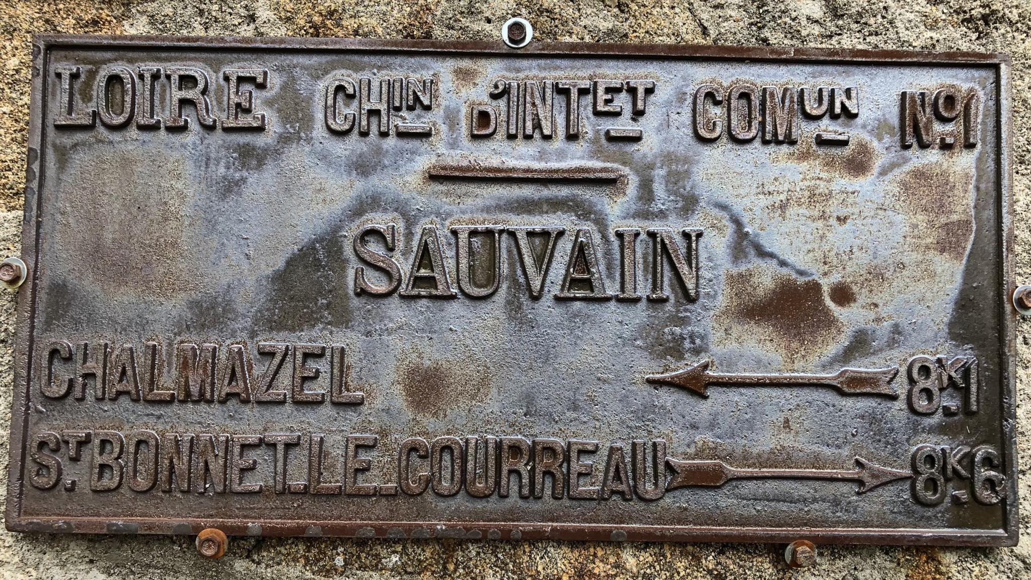 Cette plaque était sur le Chemin d’Intérêt Commun N°1, en 1866 cette voie était décrite comme allant de Montbrison à Courpières, en 1868 de Montbrison à Noirétable. La plaque n’est pas localisée, il n’est pas impossible qu’elle soit au sein du Musée de la Fourne et des Traditions abrité dans la maison Sauvagnarde de Sauvain.