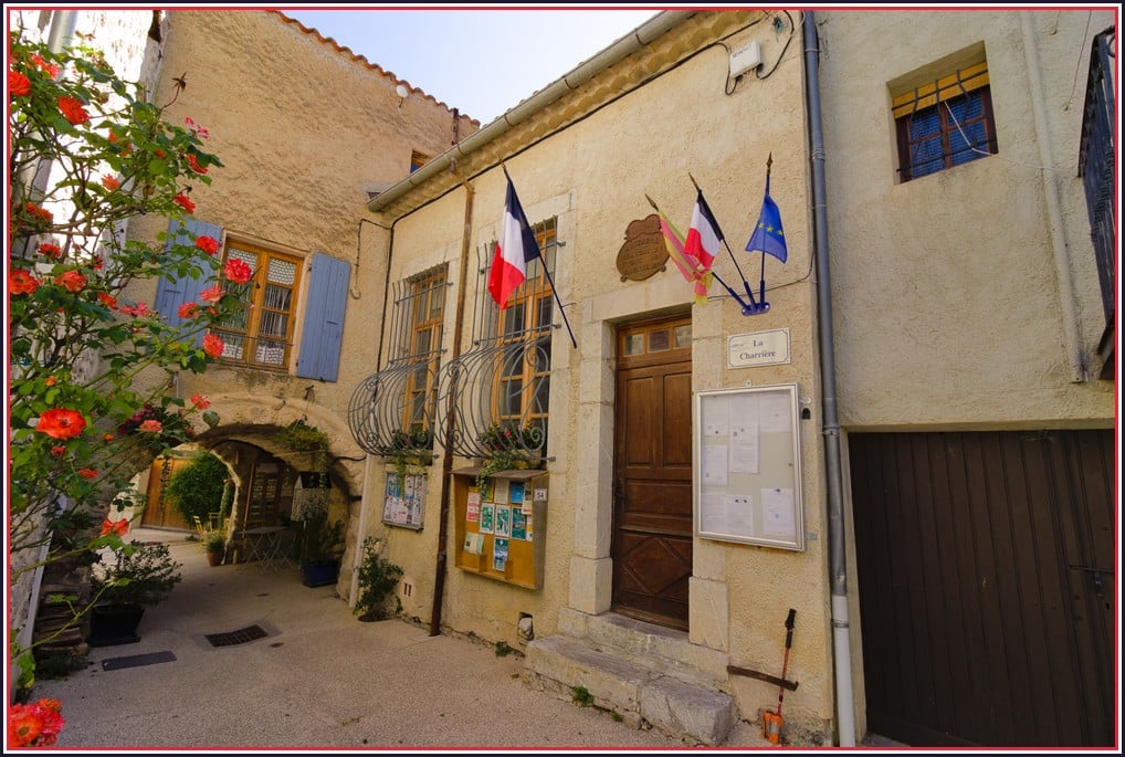 Cœur du village, lieu-dit Sarralier, la plaque de distances légales est aujourd’hui bien accrochée sur l’une des maisons. En 2014 la plaque n’était pas là.