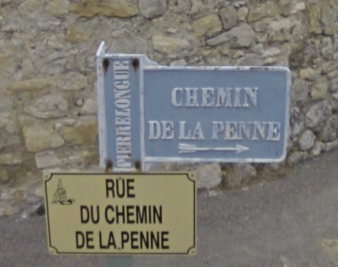 Cette plaque (la seule subsistant dans la commune) est en face de la mairie. Ce type de plaque ne se rencontre que dans le département. D’aprés le site d’Alexandre Costantini il y avait deux plaques identiques, seules les directions des flèches étaient inversées.