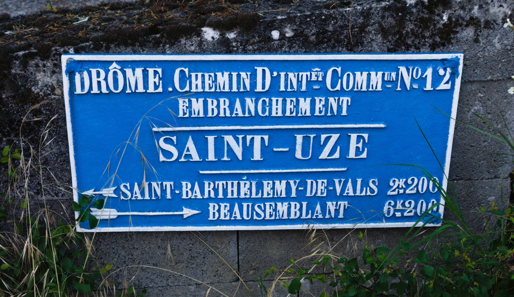 Le Chemin d’Intérêt Commun N°12 allait de St Vallier aux Fauries, un embranchement desservait St Uze et Beausemblant. Aujourd’hui D312, la première plaque est fixée sur l’église St Eustache à hauteur de la tour-clocher flanquant le côté sud du coeur.