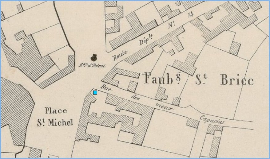 Le Chemin d’Intérêt Commun N°57 démarrait à Chartres au début de la rue des Vieux Capucins, laquelle débouchait sur la Place St Michel, quartier du Faubourg Str Brice.