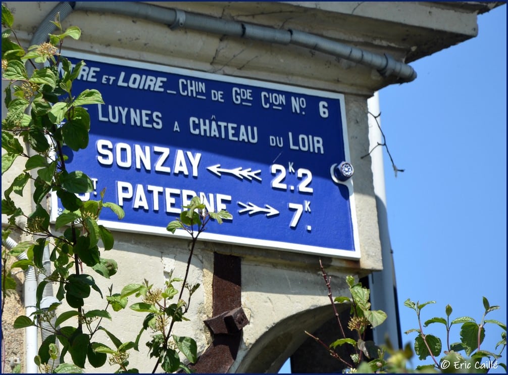 Voici un type de plaques caractéristiques des années 1920 / 1930 à destination des automobilistes. En Indre-et-Loire le Conseil Général de l’époque a commandé 21 signaux de direction en 1923 suite à la défection du Touring Club de France, (lequel avait pourtant promis de couvrir l’ensemble du territoire).Les dépenses ont été réparties sur deux années. Celle-ci ne fait pas partie de ce lot puisque sur la Nationale 749, laquelle fut crée en 1933 de Chinon à Château la-Vallière. Intersection rue de La Poste X Grande rue (D749)