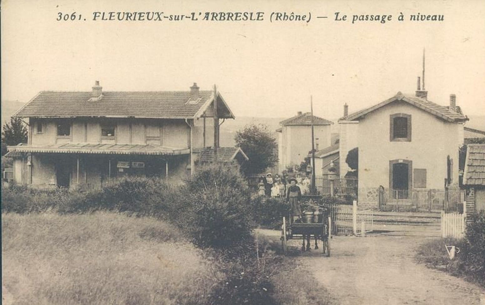 -Le passage à niveau et l’ancienne gare démolie en 1969 elle fut ouverte en 1876. Seule la maison du garde-barrière subsiste-